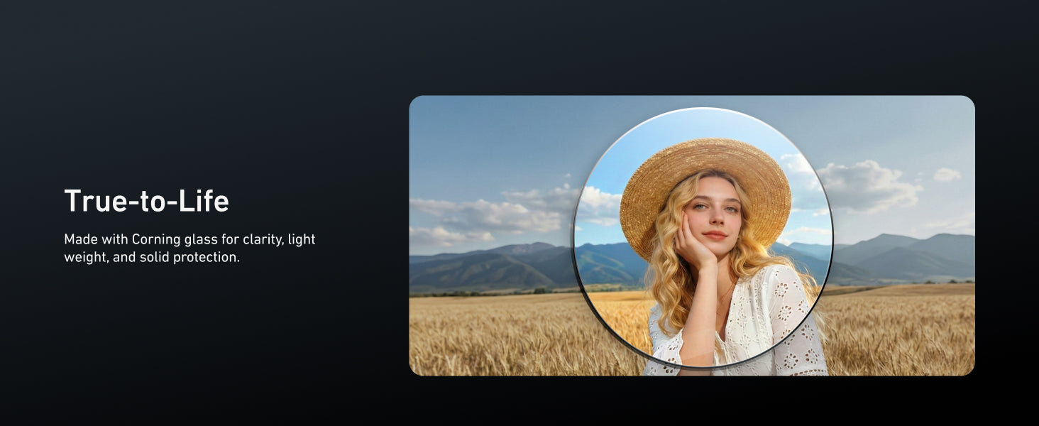 Keep image quality high with slim, Corning-glass optics and dual-sided nano coatings