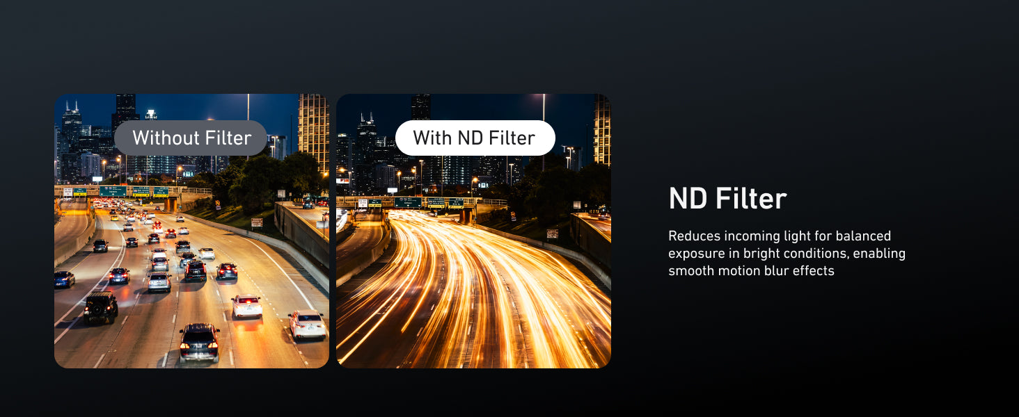 | Without Filter vs With ND Filter | Overexposed areas in bright sun, harsh highlights, choppy-looking motion. | Exposure is balanced, highlights are controlled, and motion blur looks smooth and natural. | More cinematic motion and better detail in bright daylight shots. |