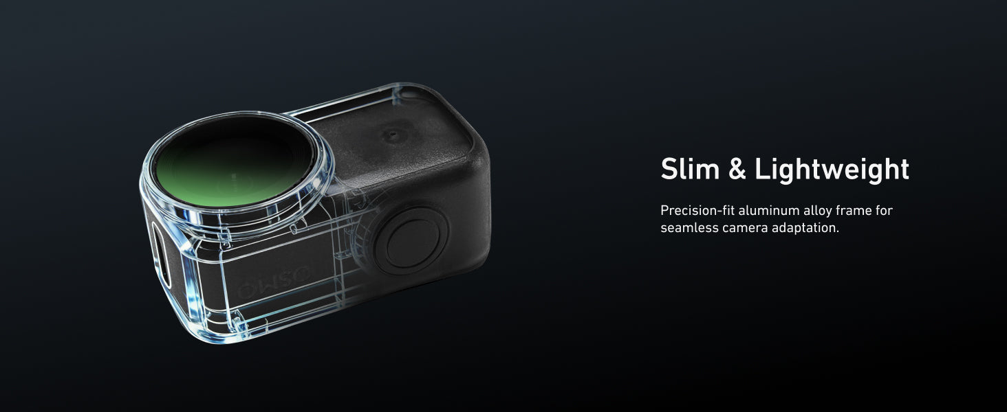 Precision-fit frames keep the filters slim and light, helping maintain Osmo Nano gimbal balance and avoiding unwanted vignetting.