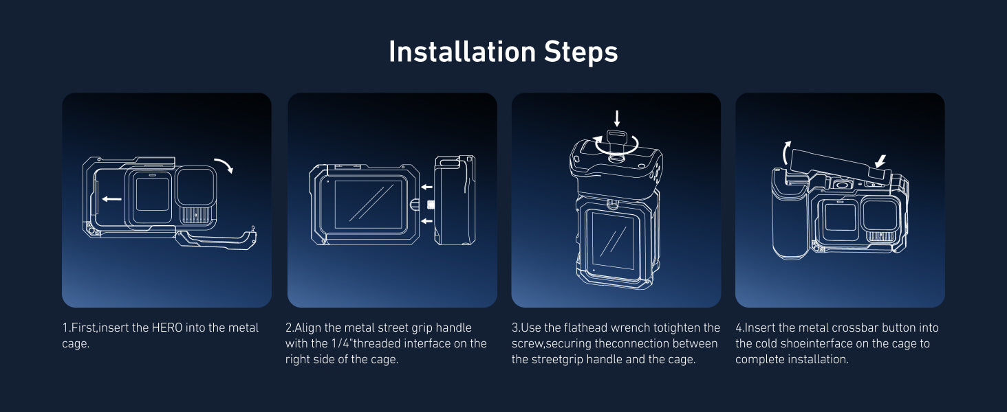Experience ultimate protection and durability with the complete aluminum alloy construction. The StreetGrip kit protects your GoPro from the elements while keeping the setup lightweight and compact for easy handling. Whether you're shooting in harsh environments or capturing quick street shots, the sturdy cage and ergonomic handle will keep your GoPro safe and stable.