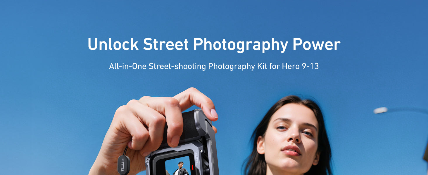 Transform your GoPro Hero 9-13 into a street photography masterpiece with the TELESIN Metal Street Photography Suit. Crafted from high-quality CNC-machined aluminum alloy, this kit enhances the GoPro's stability, comfort, and functionality, making it the perfect companion for photographers, vloggers, and content creators. Capture every moment—whether on the streets, during intense action shots, or in creative vlogs—with the professional-grade features of this all-in-one kit.