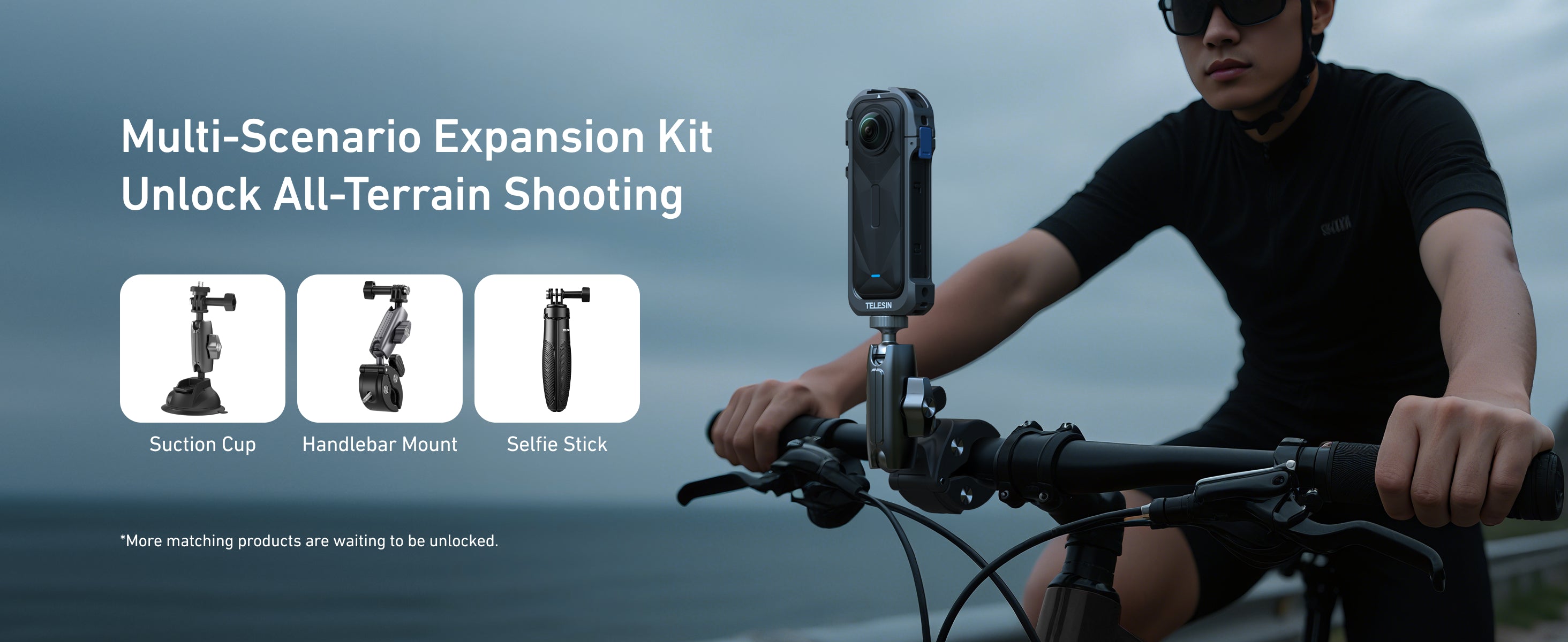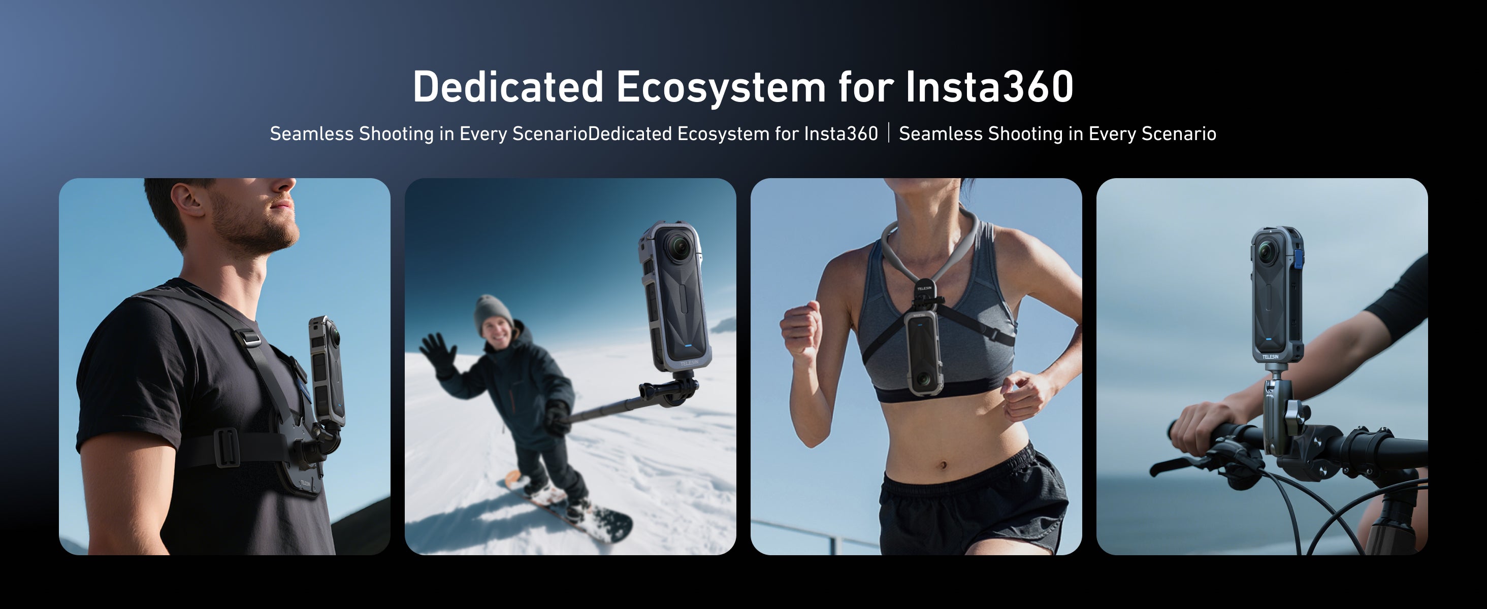 Each component is designed to seamlessly integrate with your Insta360 X5, providing the flexibility to capture every angle, whether you’re filming a fast-paced bike ride, a thrilling ski run, or capturing your adventures from a variety of creative perspectives.