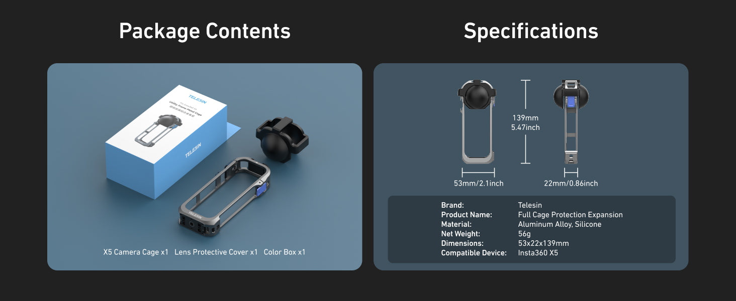 Get your hands on the TELESIN Full Cage Protection Kit for Insta360 X5 today. It’s time to unlock the full potential of your camera with this comprehensive accessory kit. Whether you're heading out on your next adventure or preparing for a creative shoot, this kit provides everything you need for secure, stable, and high-quality footage.