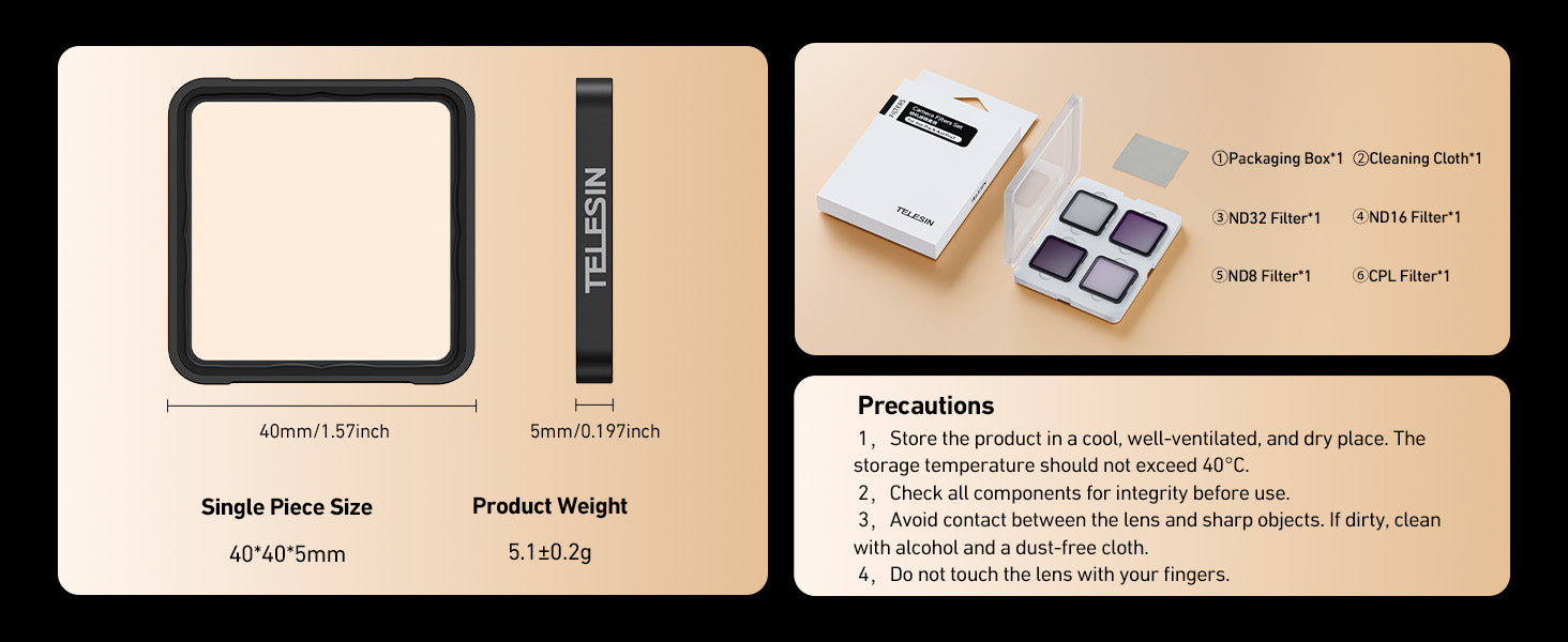 TELESIN has years of experience designing filters and accessories for leading action cameras, including DJI, GoPro and Insta360. This filter set for Insta360 Ace Pro / Ace Pro 2 is precisely tuned for the camera’s sensor, field of view and color science.
