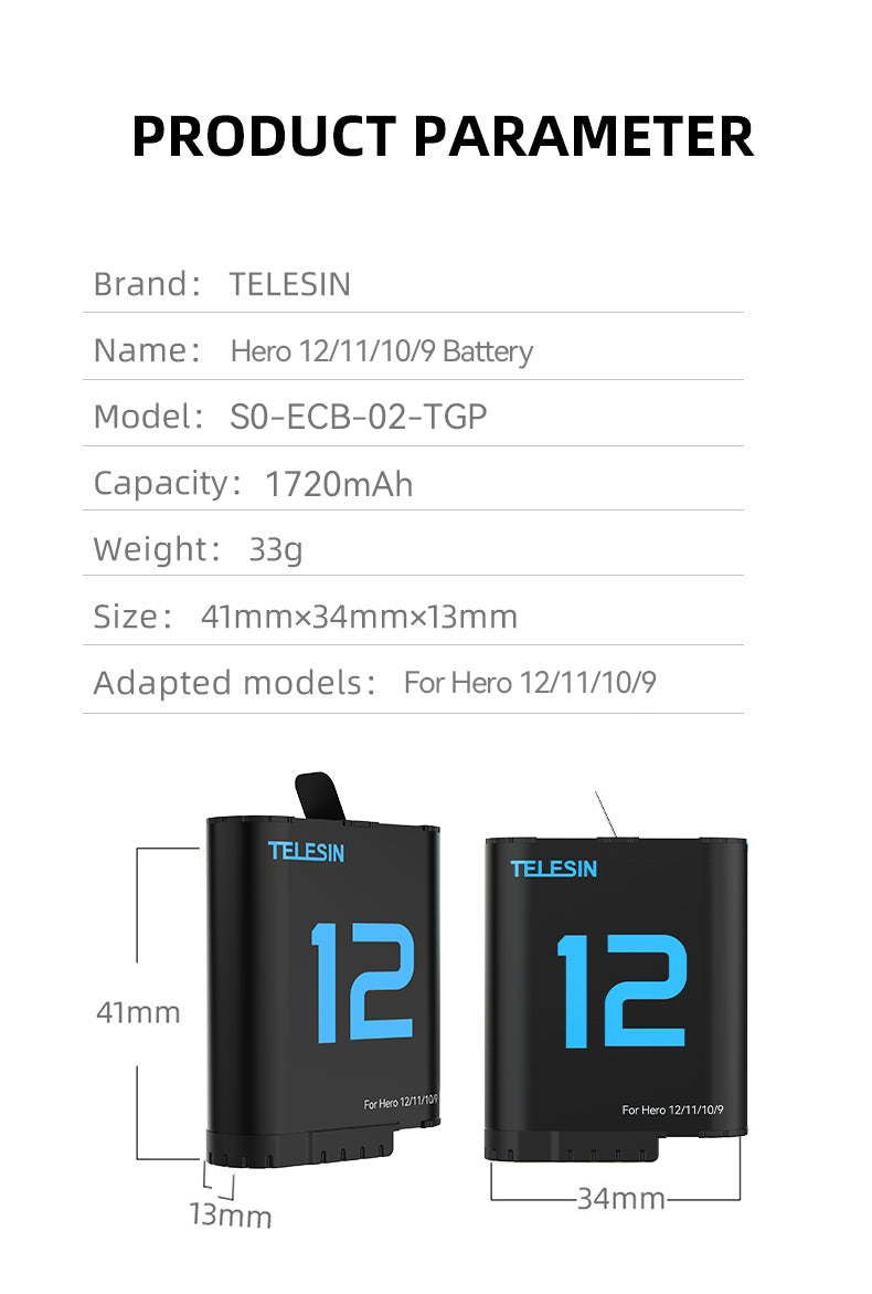 Telesin Fully decoded battery For Hero 12/11/10/9