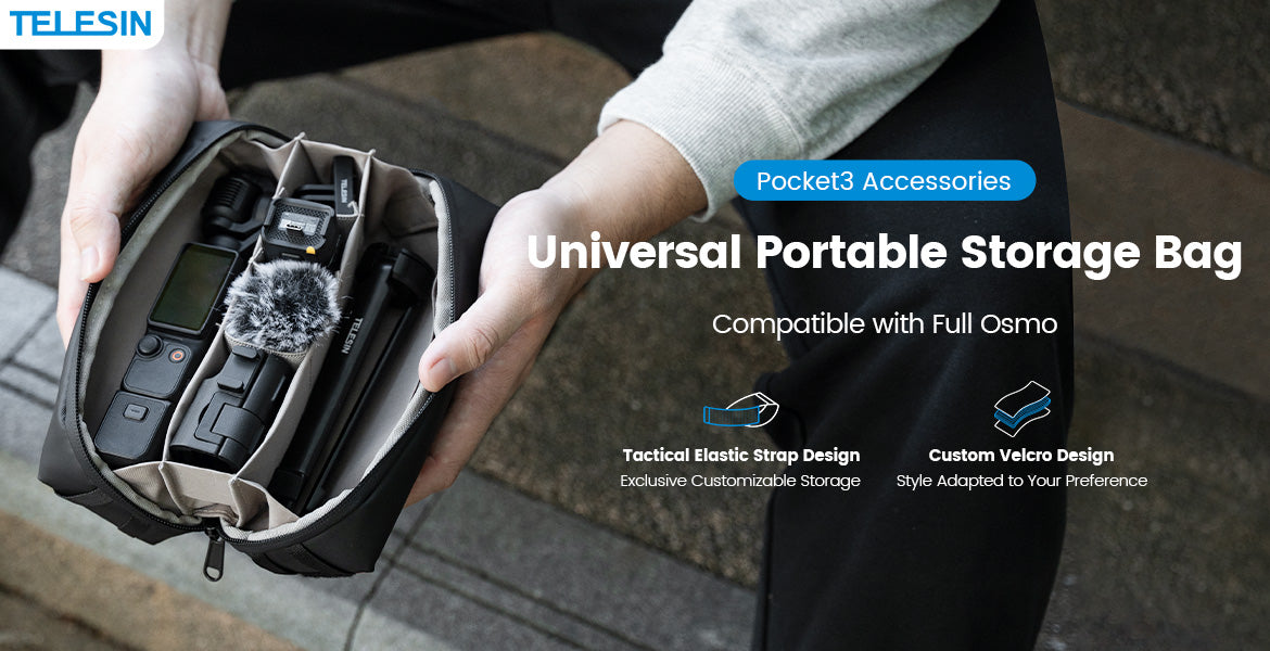The TELESIN Universal Portable Storage Bag is perfect for photographers, vloggers, and content creators who need to keep their Osmo accessories organized and easily accessible. Whether you're shooting outdoors, traveling, or just need a secure place to store your gear at home, this bag offers the perfect solution. Take it with you on your next adventure or filming project and enjoy a more organized and efficient workflow.