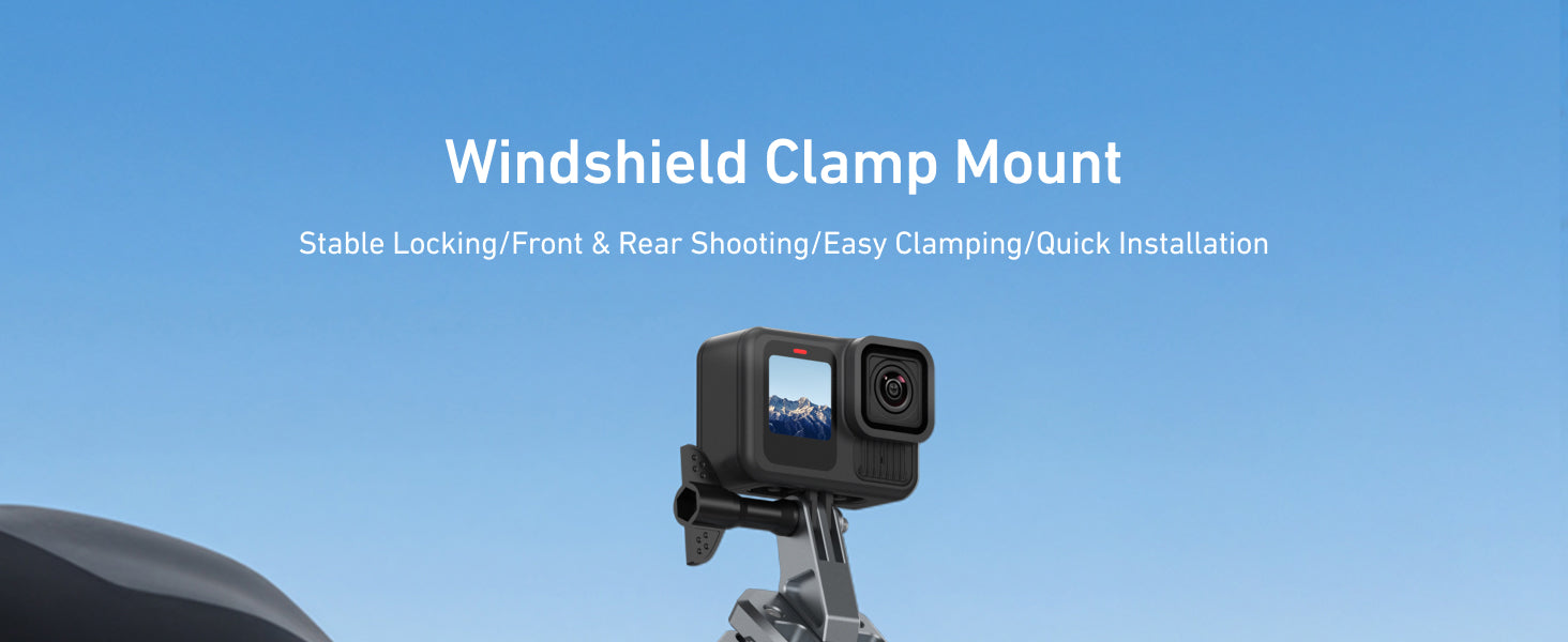 The TELESIN Windshield Clamp Mount provides a flexible, ultra-stable platform for recording every adventure — whether you're cruising scenic routes, capturing thrilling POV shots, or snapping easy selfies during outdoor activities. Designed to work seamlessly with popular action cameras, including GoPro and Insta360, this mount is an ideal solution for action sports, road trips, and cycling enthusiasts.