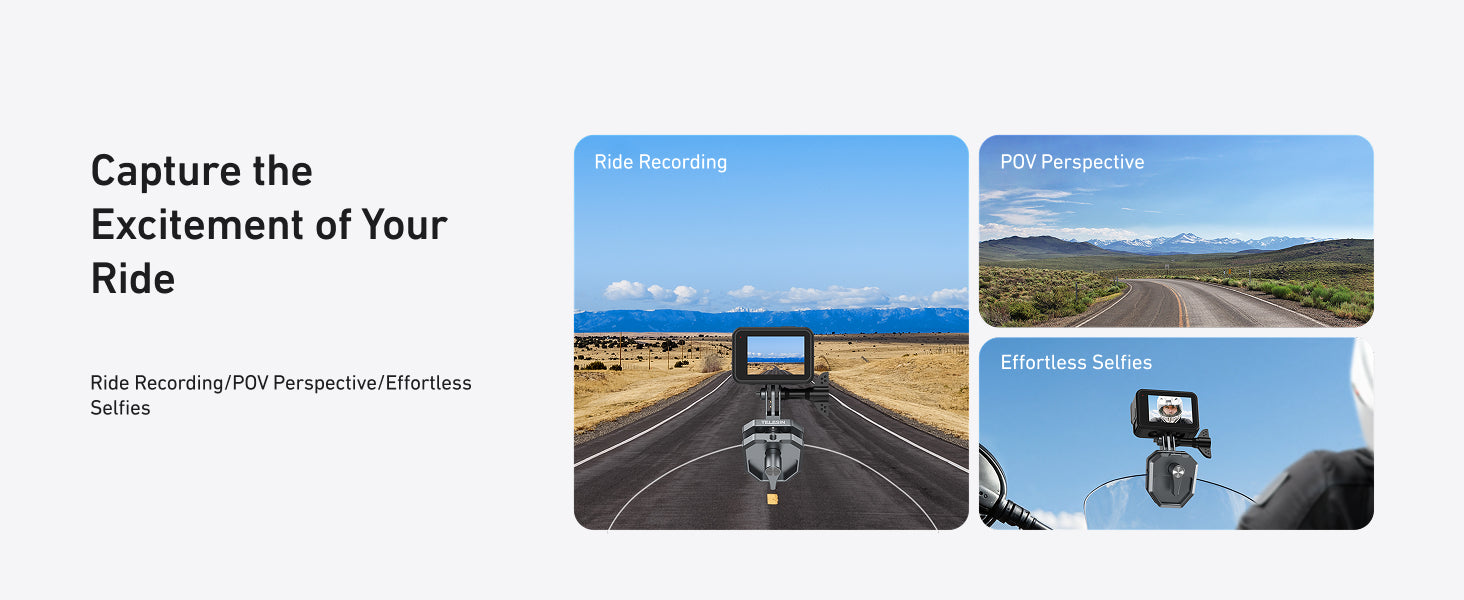 With 180° of adjustable flexibility, you can easily capture shots from any angle. Whether you're recording from a bike, motorcycle, or vehicle, you’ll always get the perfect POV. The mount’s adjustability allows you to quickly switch angles to match the scene you're capturing, ensuring versatility in your shots.