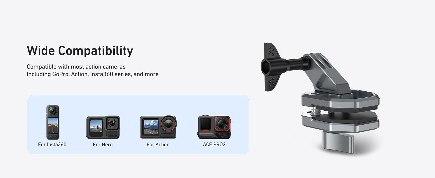 - Wide Compatibility: Works with GoPro, Insta360, and most action cameras.