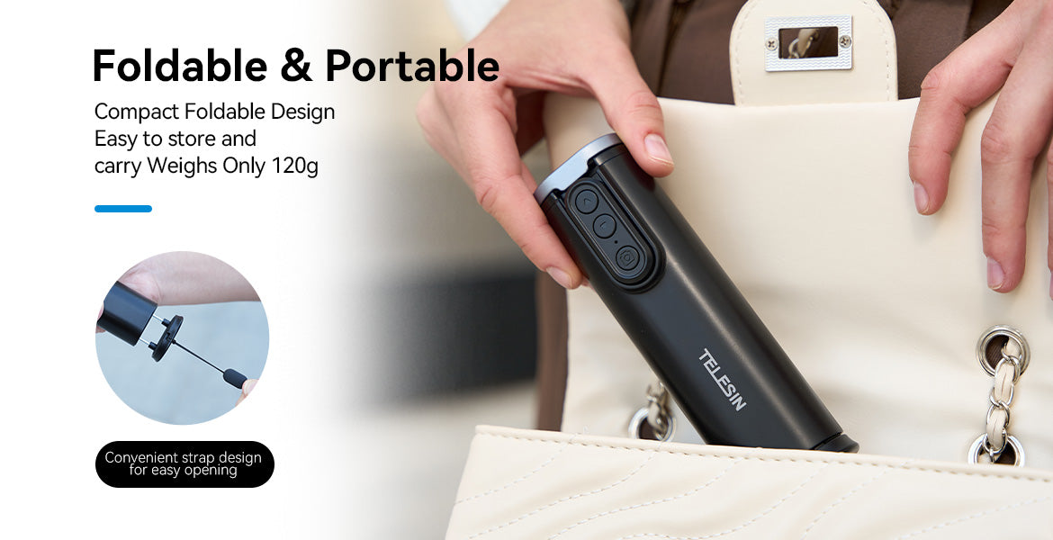 The TELESIN Travel Phone Holder is the perfect companion for anyone who loves capturing memories on the go. Whether you're a traveler, vlogger, or photographer, this compact, foldable phone clamp lets you capture steady videos and photos anywhere. Lightweight and designed for portability, it's ideal for packing in your bag and taking along on your next adventure.