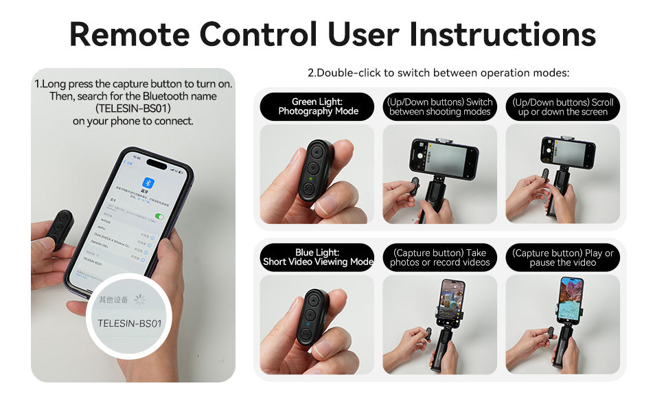A2: The included Bluetooth clicker allows you to control your phone or tablet remotely without touching it. Whether you're swiping videos, flipping Kindle pages, changing music, or taking photos, it's perfect for hands-free use.