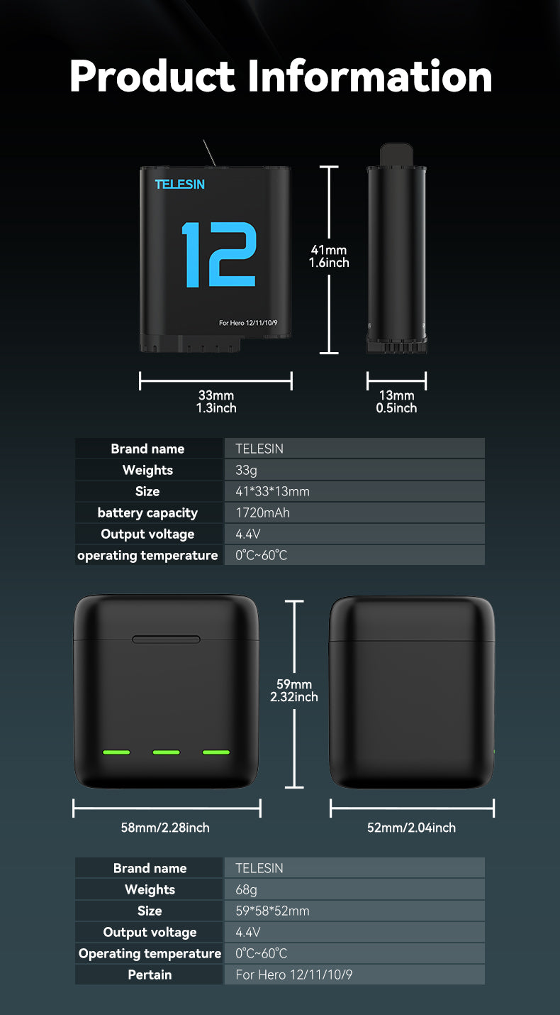 Charging Case with 2 Batteries for Hero 9-12