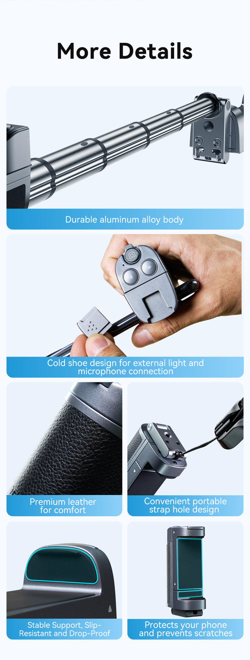 Widely compatible, fully adaptable, 65-90mm clampable range, adaptable to more than 99% of mobile phones.
