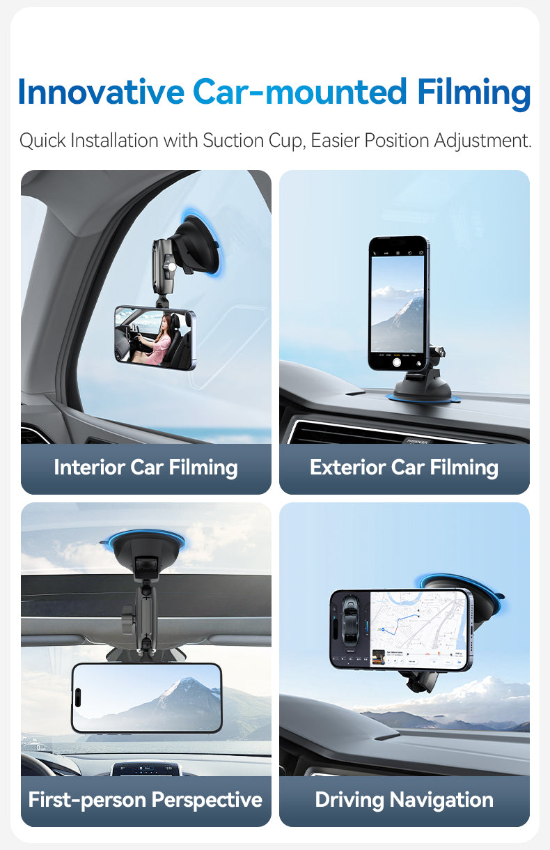 Quick Installation with Suction Cup, Easier Position Adjustment.