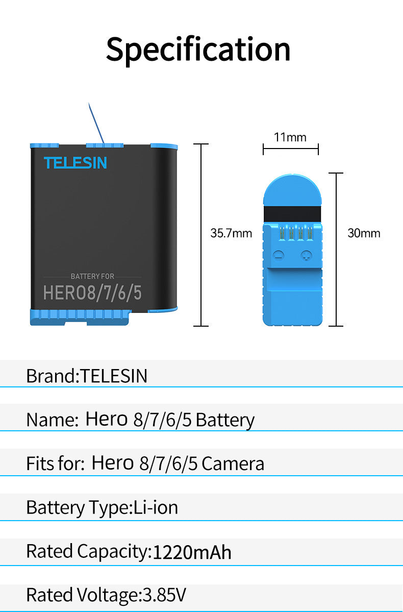 4. Strong compatibility: works with TELESIN battery pack and Original GoPro battery pack.