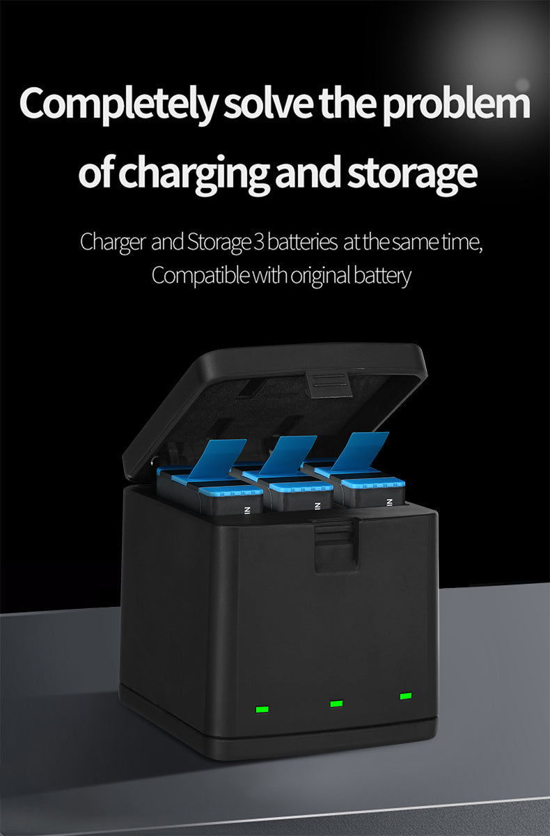 3 Slots LED Storage Charger Box for GoPro 5-8