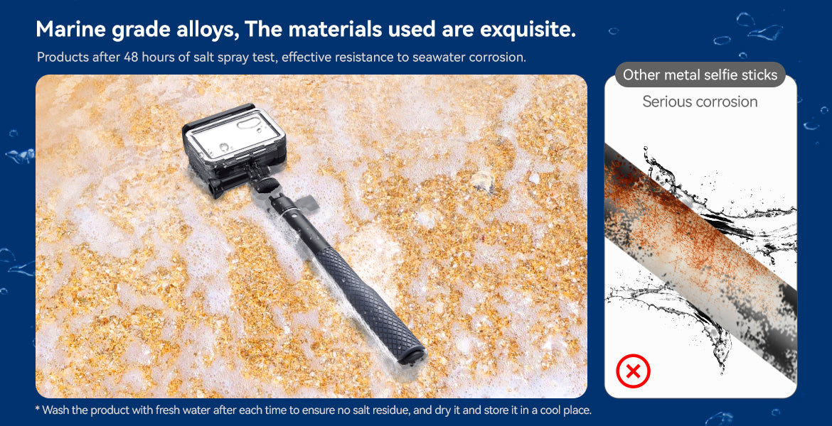2. Non-rust. The overall aluminum alloy material has passed the salt spray test and is not rusty, suitable for users to use in underwater and near-water scenes.