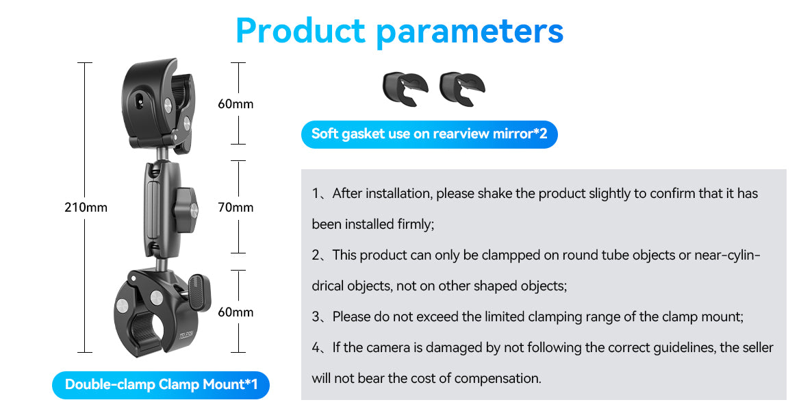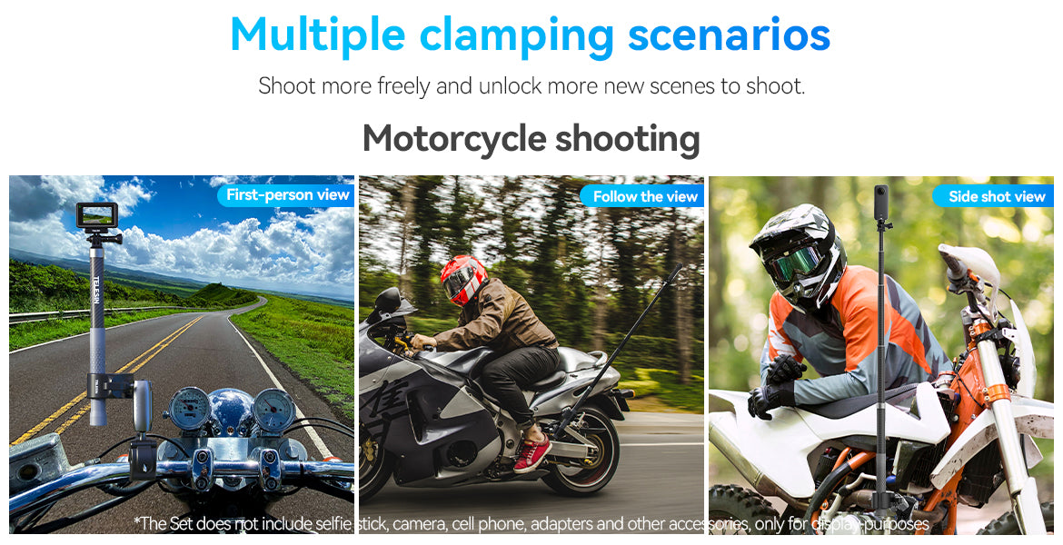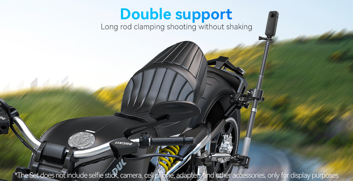 Made of aluminum alloy, durable and with a 360° rotatable ball head structure, can be well connected to shooting equipment, especially the combination of selfie sticks and motorcycles.