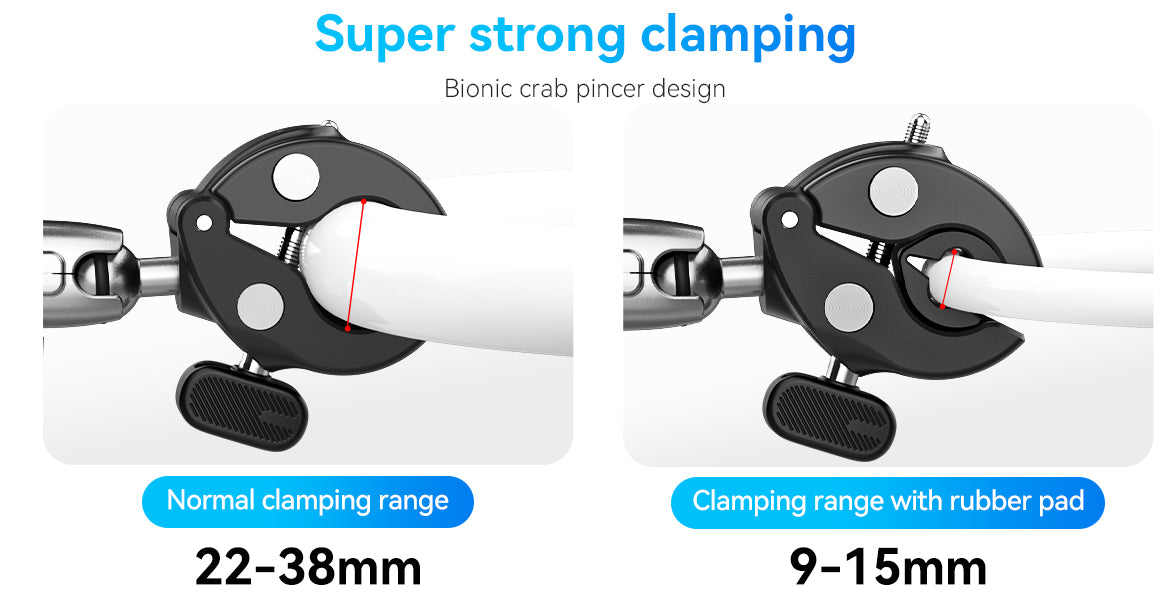 TELESIN Double-headed Crab Clamp Bike/Moto Pipe Clamp
