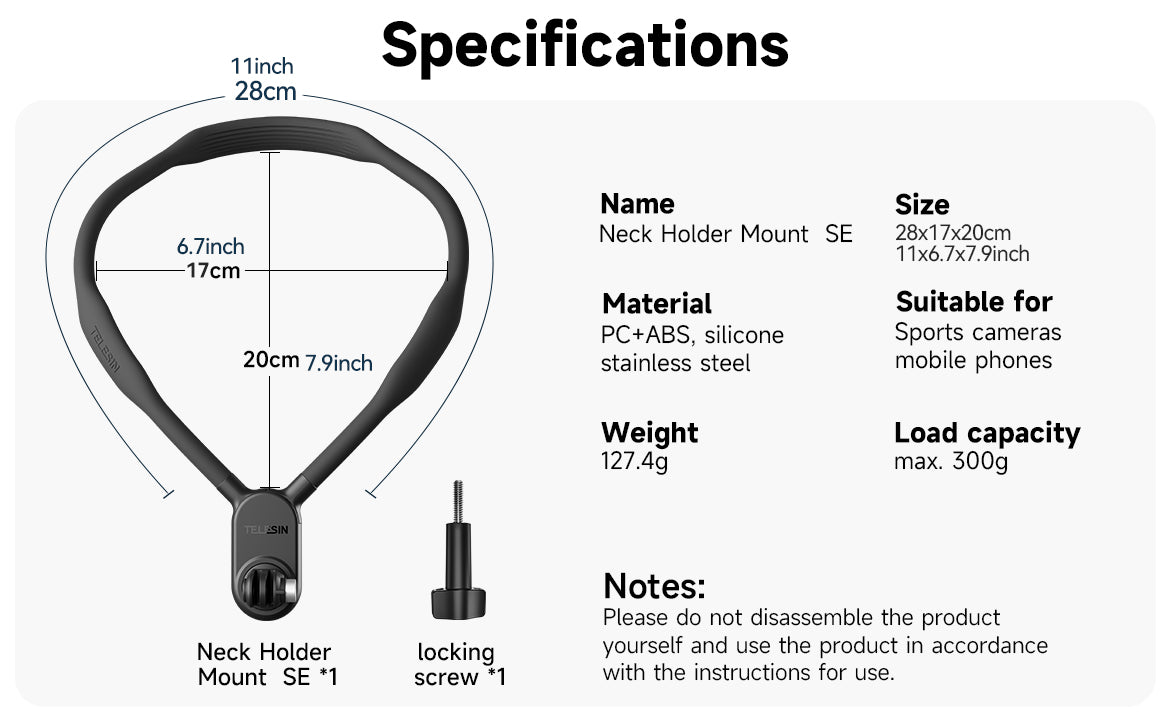 TELESIN Neck Holder Mount SE (No Magnetic) for Action Cameras/ PhonesTELESIN Neck Holder Mount SE (No Magnetic) for Action Cameras/ PhonesTELESIN Neck Holder Mount SE (No Magnetic) for Action Cameras/ PhonesTELESIN Neck Holder Mount SE (No Magnetic) for Action Cameras/ PhonesTELESIN Neck Holder Mount SE (No Magnetic) for Action Cameras/ Phones