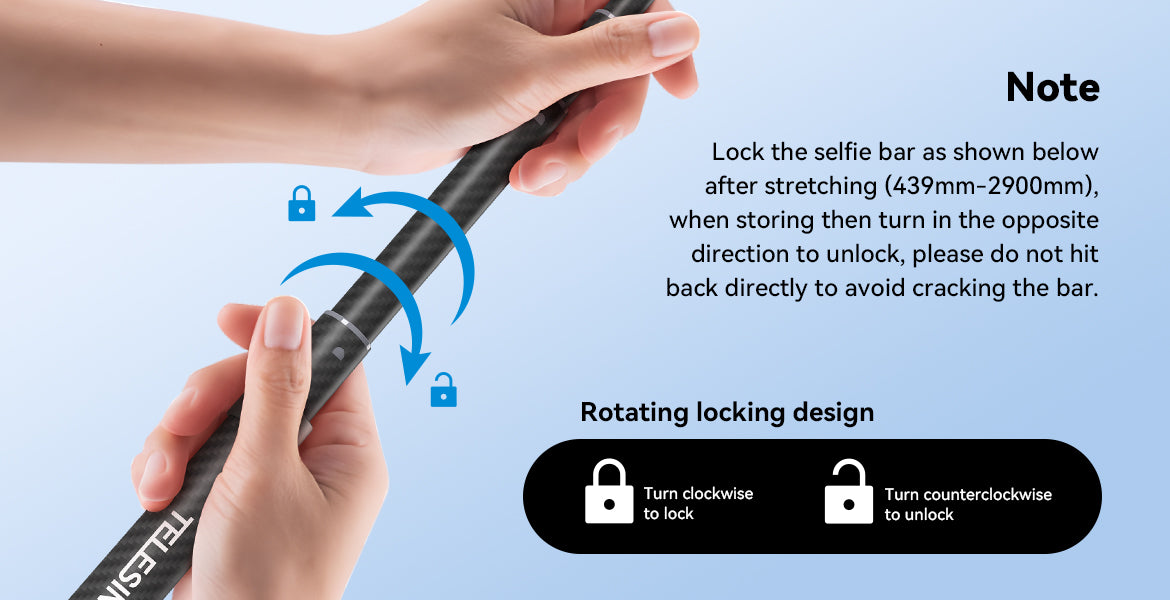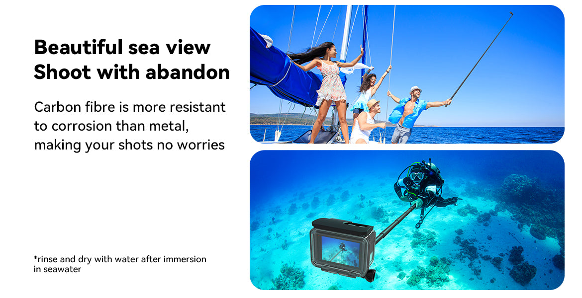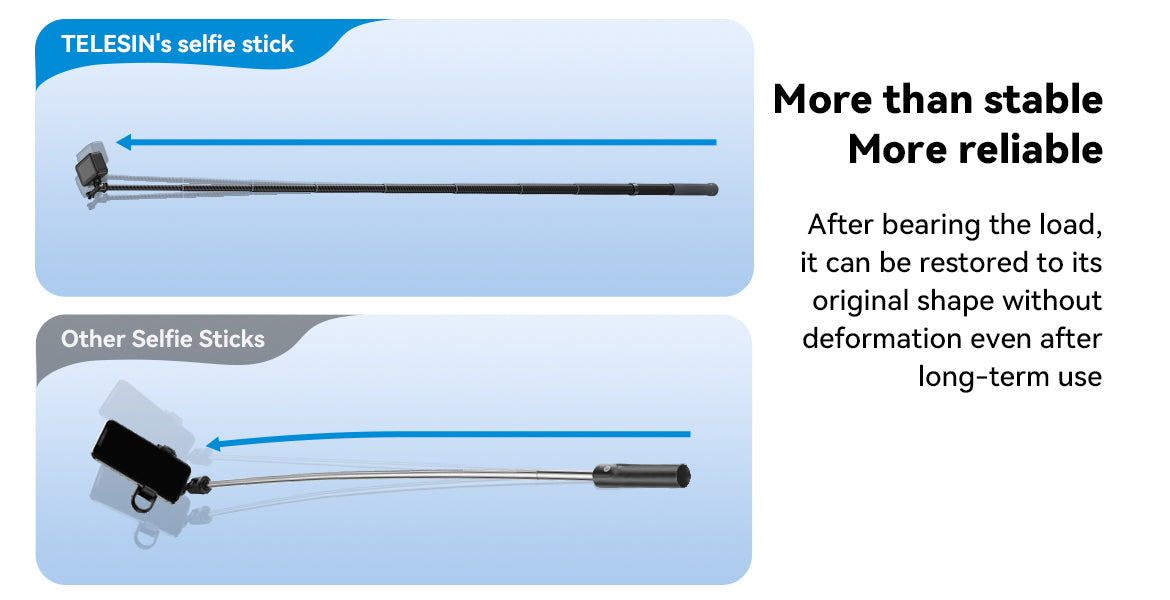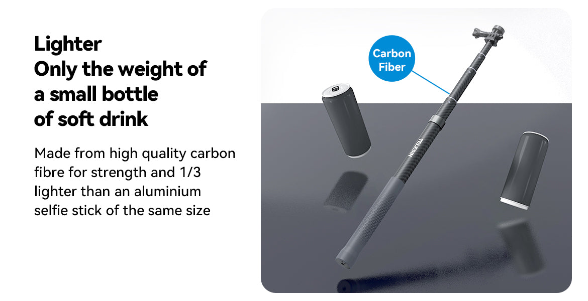 Made from high-quality carbon fibre, the TELESIN 3M Selfie Stick is 1/3 lighter than traditional aluminum sticks, providing enhanced strength and stability without adding extra weight to your gear.