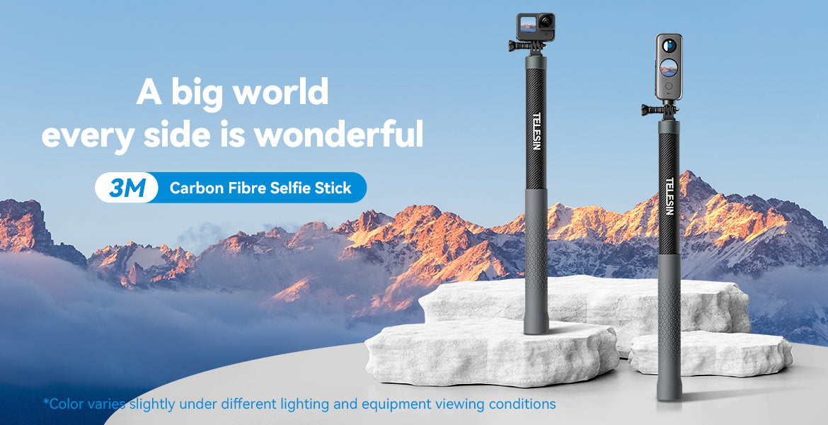 Whether you're filming your next YouTube vlog, Instagram story, or action sports content, the TELESIN 3M Carbon Fibre Selfie Stick offers a lightweight, stable platform that’s easy to carry and use for long filming sessions.