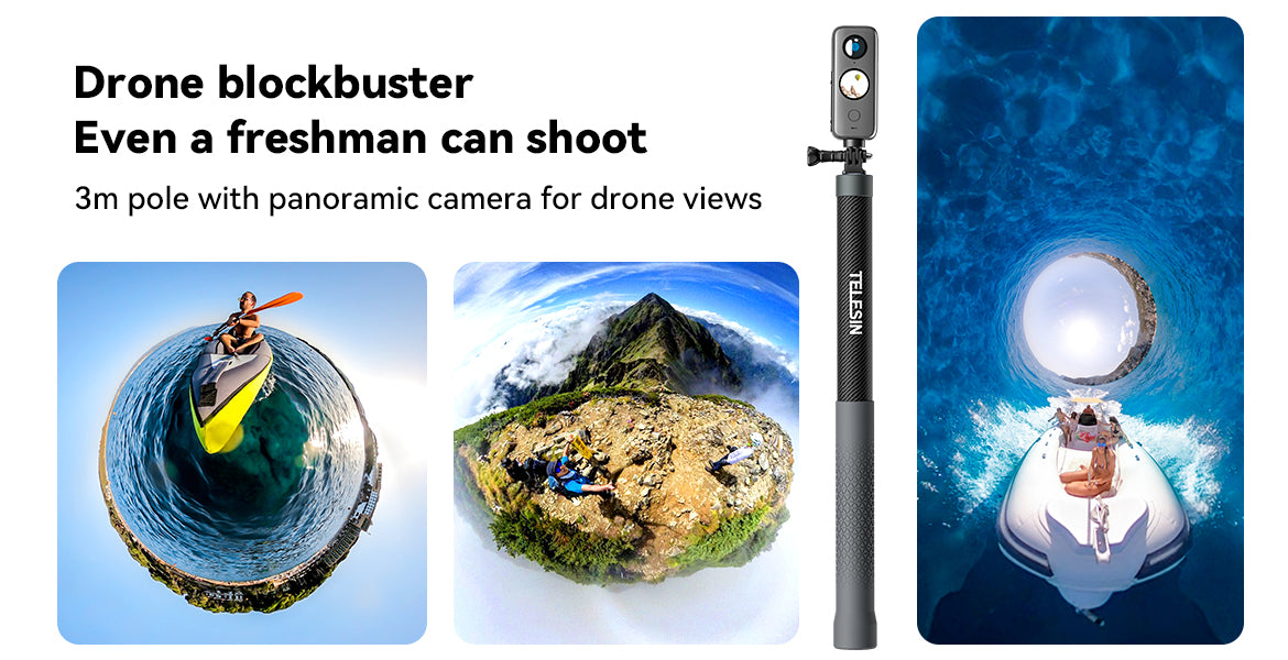 Capture every angle effortlessly with the TELESIN 3M Carbon Fibre Selfie Stick. Designed for creators and adventurers, it provides the perfect tool to capture stunning content in any environment.