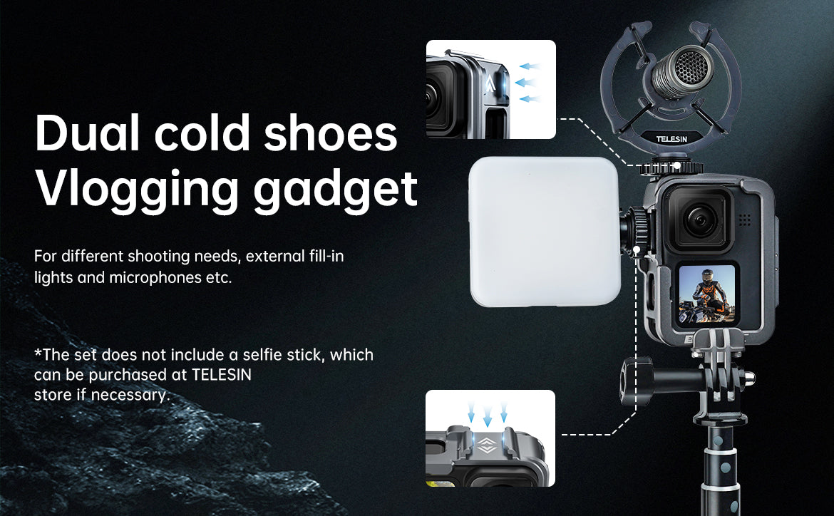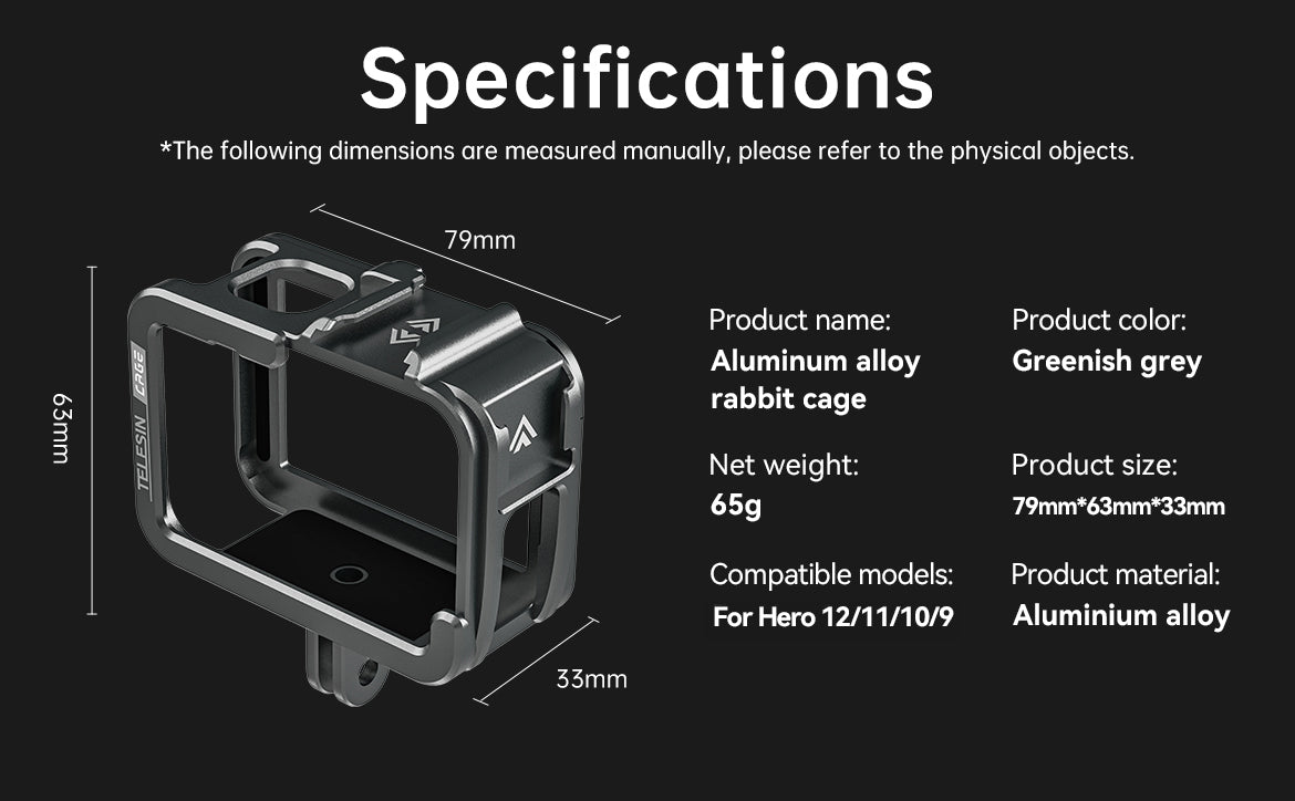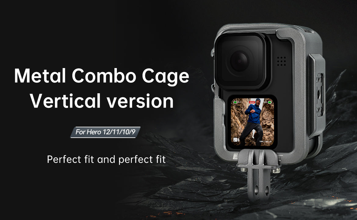 TELESIN Metal Cage Vertical Frame for GoPro 12/11/10/9