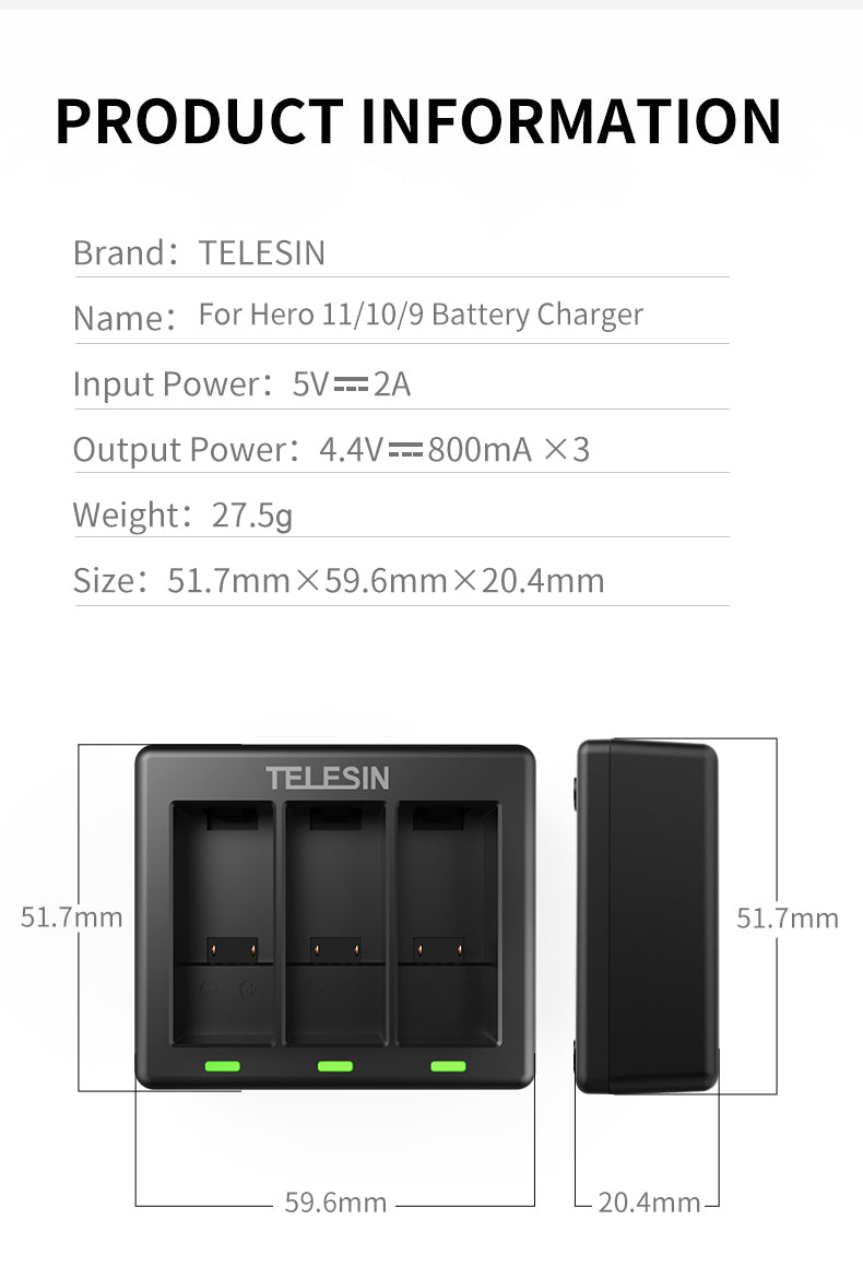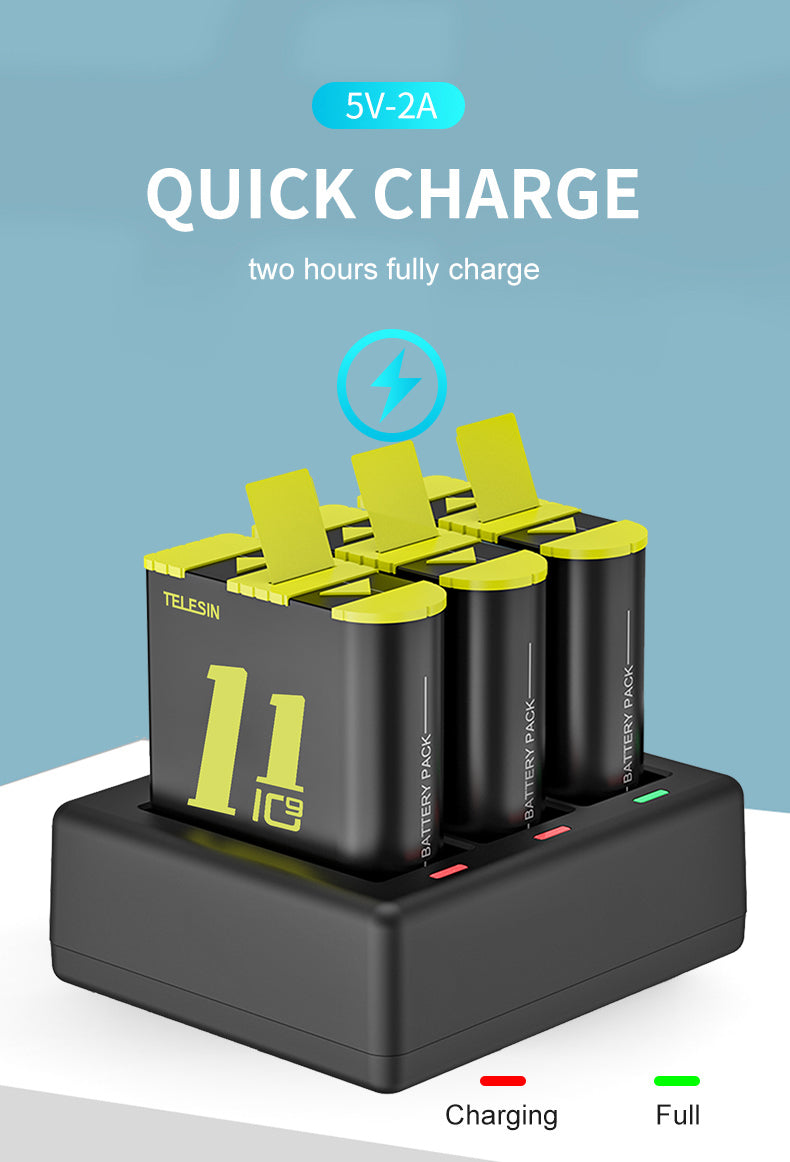 TELESIN 3 Slots Charger for GoPro Hero 9/10/11/12