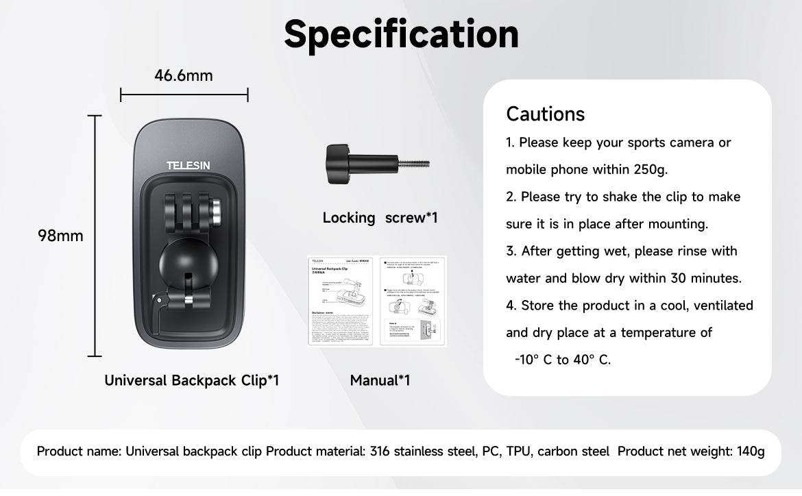 TELESIN Upgraded Magnetic Universal Backpack Clip