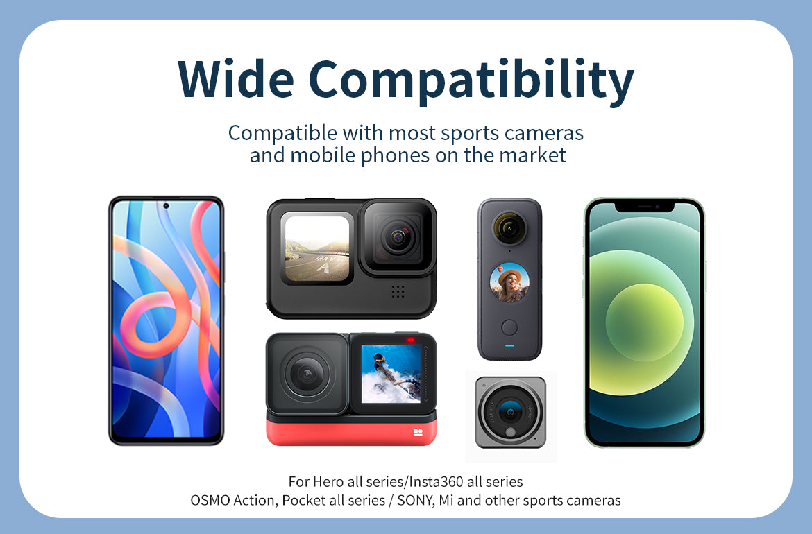 Compatible with GoPro, Insta360, OSMO Action, and many other action cameras. |